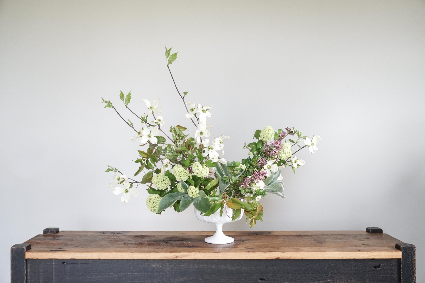 I added a couple sprigs of lilacs, keeping them in line with the shape already set with the dogwood branches.